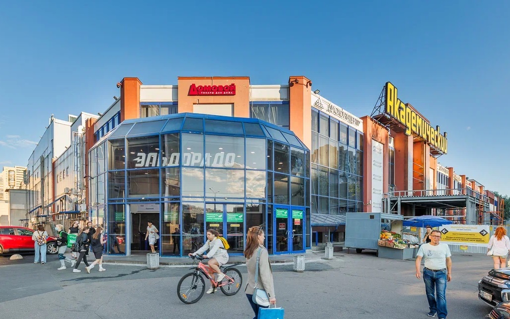 Торговый комплекс "Академический" расположен в шаговой доступности от одноименной станции метро Академическая.